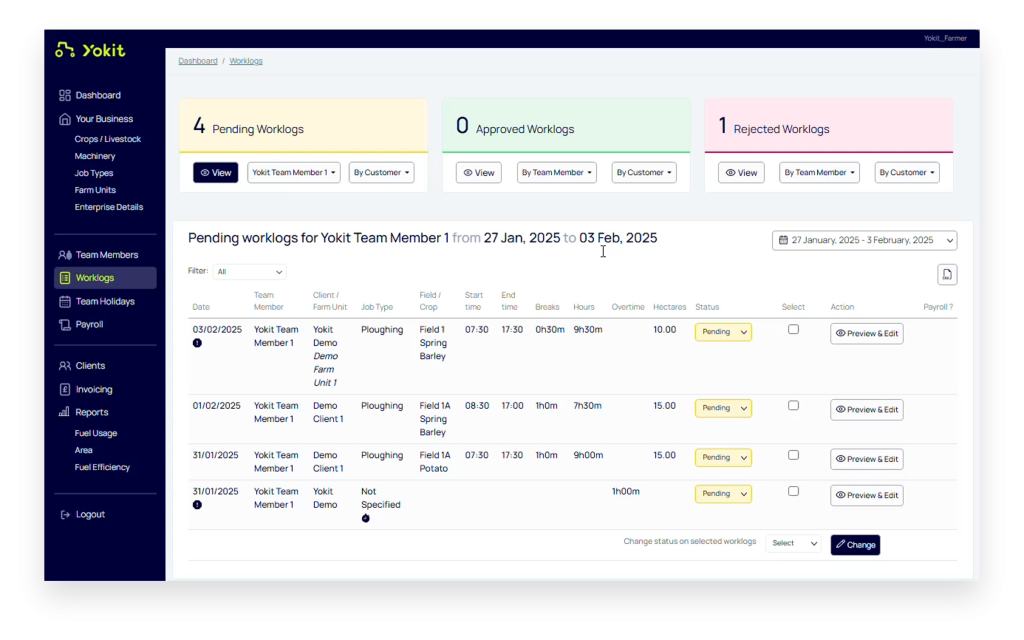 Because every job is digitally recorded, Yokit helps businesses understand the true cost of their work. Managers can analyse fuel usage, compare machine hours, and review job performance across different fields or customers. These insights help teams identify patterns and make better operational decisions.